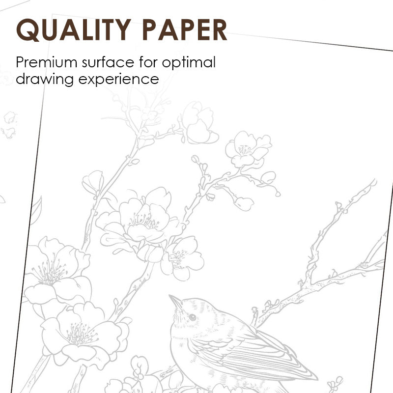GONGBI KÖVETÉSI GYAKORLÁS – A bonyolult Gongbi stílust hangsúlyozva ez a könyv részletes vonásgyakorlásokon keresztül vezeti végig a tanulókat. A klasszikus kompozíciók ismétlésével a felhasználók megérthetik az ecsetnyomást, a vonalváltozást és a kompozíciós egyensúlyt. Ez a módszer lehetővé teszi a tanulók számára, hogy elsajátítsák a hagyományos technikákat, miközben fokozatosan elsajátítják a kifinomult ecsetkezelés árnyalatait.
